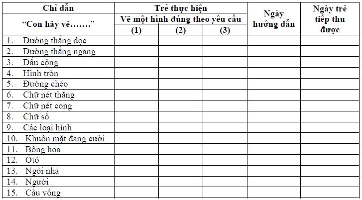 Giải thích cách đánh giá khả năng tiếp thu của trẻ: Đánh dấu “+” vào ô số: