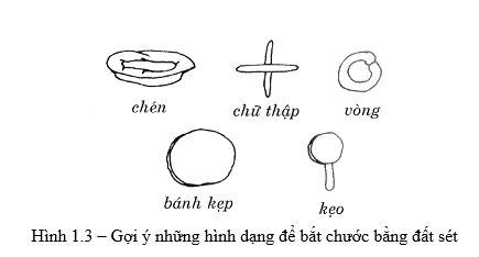 - Vừa nặn cái chén bạn vừa nói:“Con làm như thế này”. Có lẽ bạn phải giúp trẻ khởi động, nhưng bạn tiếp tục nặn xong hình bạn muốn để có mẫu cho trẻ bắt chước.