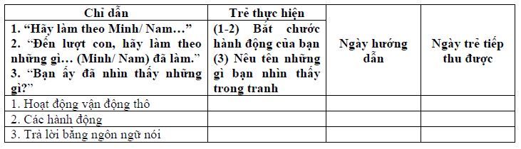 Giải thích cách đánh giá khả năng tiếp thu của trẻ: Đánh dấu “+” vào ô số: