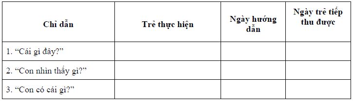 - Nếu trẻ không trả lời / thực hiện được kể cả có sự hỗ trợ và nhắc nhở của cô giáo