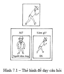 - Hướng sự chú ý của trẻ về phía hình thứ hai và nói “Con nhìn này, ai?”. Cố gắng cho trẻ nói “người đàn ông”. Nếu trẻ không trả lời, hướng sự chú ý của trẻ về phía hình thứ nhất và lặp lại câu “người đàn ông đi”, rồi hướng sự chú ý của trẻ vào hình thứ hai và lặp lại câu đó. Sau đó bạn nói “Ai? Người đàn ông”.