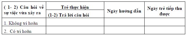 - Nếu trẻ không trả lời / thực hiện được kể cả có sự hỗ trợ và nhắc nhở của cô giáo
