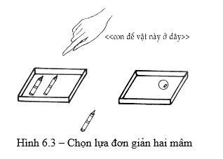 - Đặt 2 mâm chọn lựa trước trẻ và để một hạt chuỗi trên một mâm và 1 cây bút chì màu trên mâm kia.