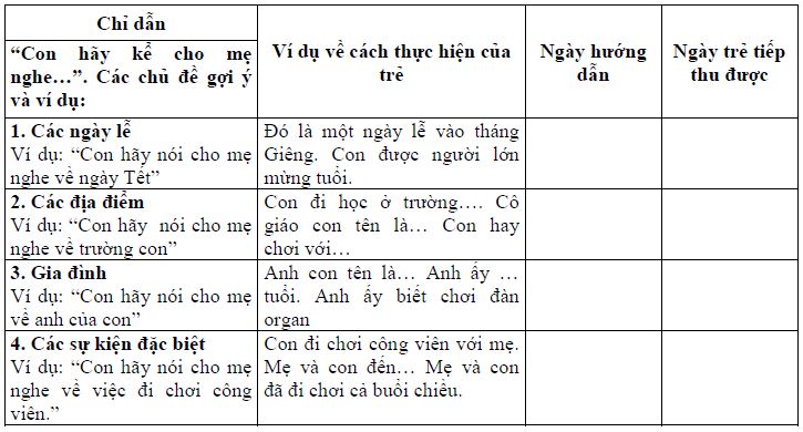 Giải thích cách đánh giá khả năng tiếp thu của trẻ: Đánh dấu “+” vào ô số: