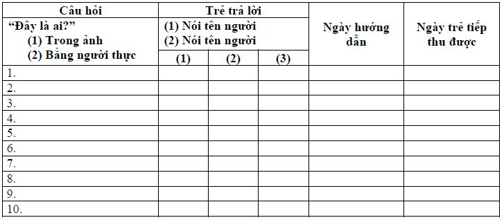 Nguồn: Sách và tài liệu tham khảo "100 bài tập can thiệp hành vi của Catherine Maurice"