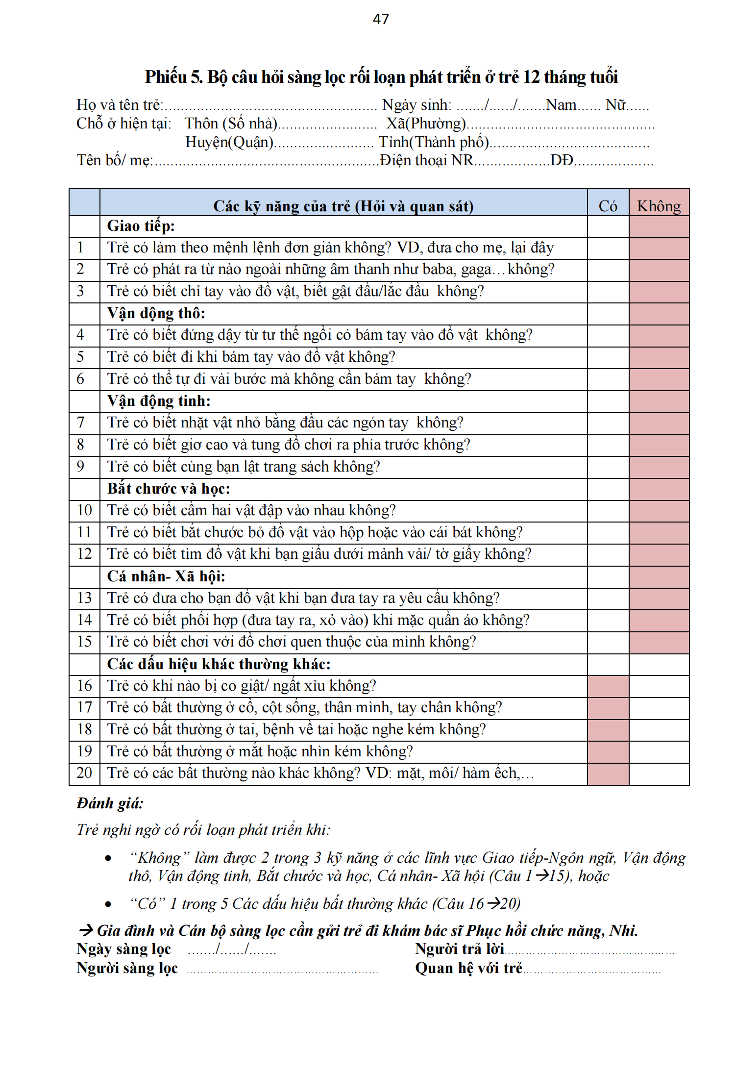 TÀI LIỆU 1 > CHƯƠNG II > Bài 3. Hướng dẫn thực hiện sàng lọc phát hiện rối loạn phát triển và dấu hiệu nghi ngờ khuyết tật