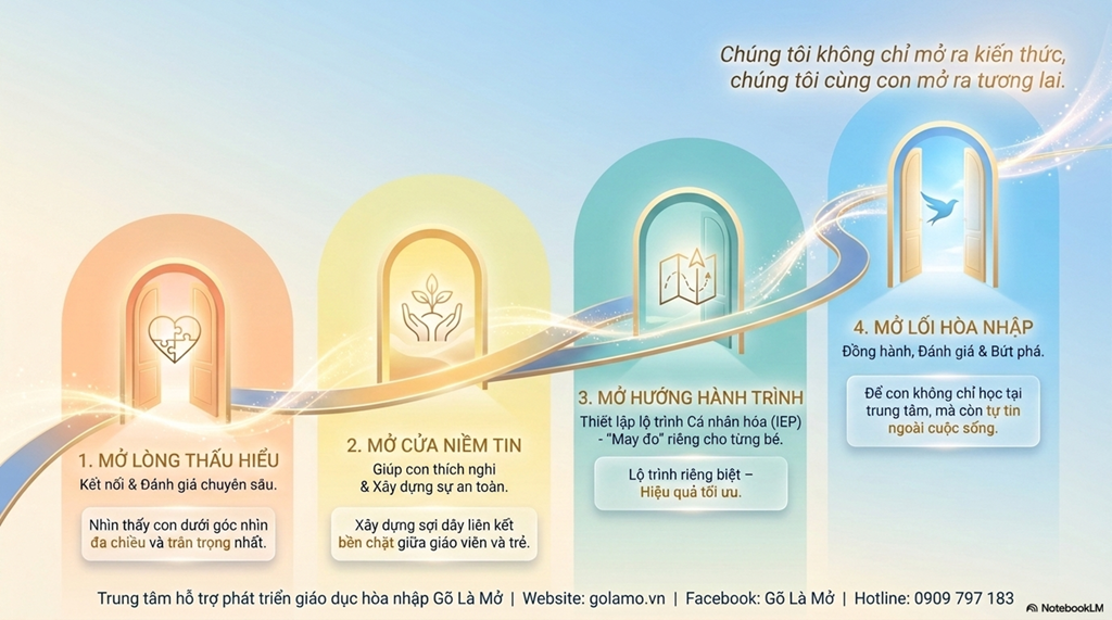 Tại Gõ Là Mở, chúng tôi tin rằng mỗi đứa trẻ đều có một chiếc chìa khóa riêng để mở ra thế giới. Quy trình can thiệp của chúng tôi không chỉ là những bước kỹ thuật, mà là một hành trình tận tâm để cùng con bước ra khỏi rào cản.