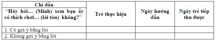 Giải thích cách đánh giá khả năng tiếp thu của trẻ: Đánh dấu “+” vào ô số: