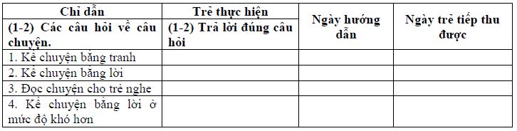 Giải thích cách đánh giá khả năng tiếp thu của trẻ: Đánh dấu “+” vào ô số: