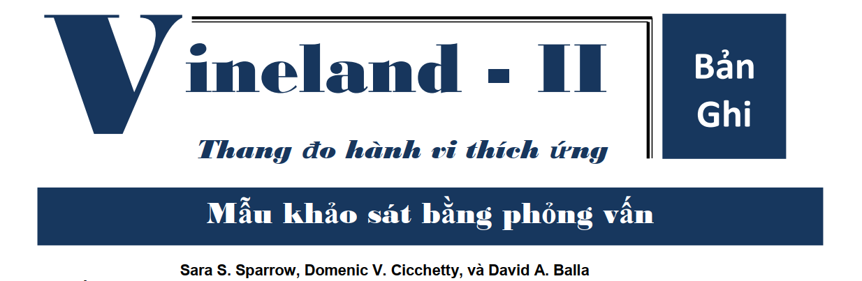 MỤC ĐÍCH: Vineland II - thang đo hành vi thích ứng. Đây là một công cụ chẩn đoán sẽ giúp đo lường khả năng của cả trẻ em và người lớn trong việc đối phó với cuộc sống hàng ngày (tức là kỹ năng giao tiếp, kỹ năng vận động, các chức năng cần thiết trong cuộc sống hàng ngày và xã hội hóa).